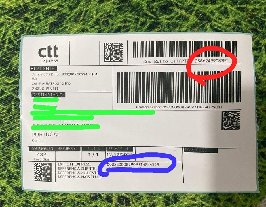 - How to track: Use the code circled in red on your local postal service website (e.g., CTT for Portugal).